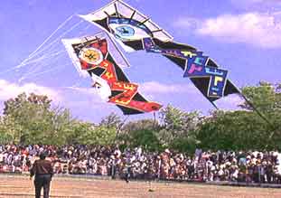 The visitor is naturally curious to learn more about kites, and his curiosity can be satisfied at the Museum, which presents briefly and colourfull, the history of kites. For instance, we learn that in 200 B.C. Huan Thang of china flew a kite at night to overawe the army of the Han dynasty. From 100 B.C. to A.D. 500, kites were used for sending signals and to measure the distance of enemy camps. By A.D. 930, the Japaneses mention "Shiroshi", meaning paper bird, for the first time. Between A.D. 960 and 1126, kites were flown to banish evil. In Indian literature, kites were mentioned for the first time in " Madhumati " by Manzan , and were called "patang", which is the word still used today. | ![]() |